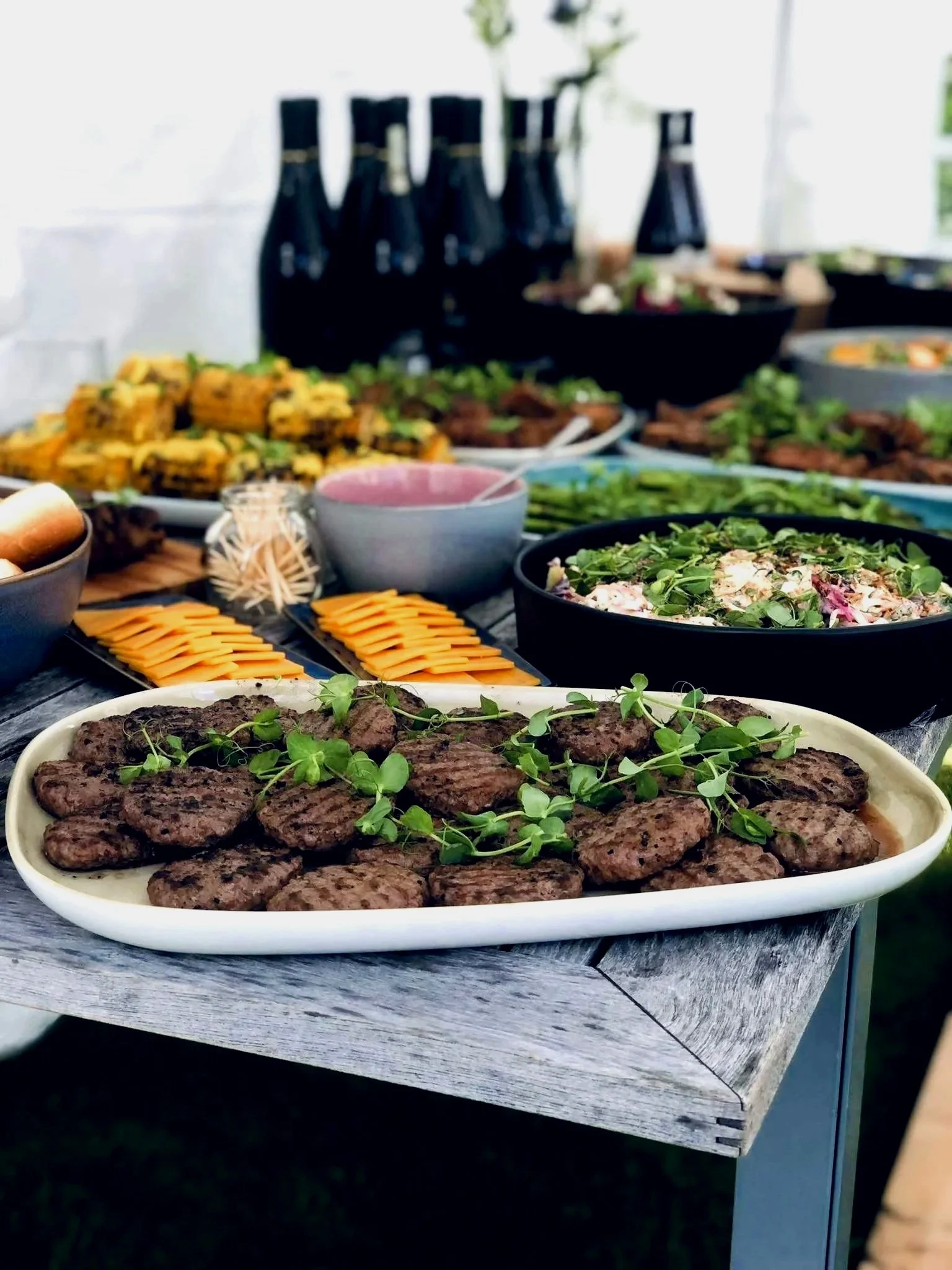 En komplett BBQ-opplevelse med grillede klassikere, saftig kjøtt, friske salater og smakfullt tilbehør. Perfekt for sommerfester, uformelle samlinger og selskaper der god grillmat står i sentrum.